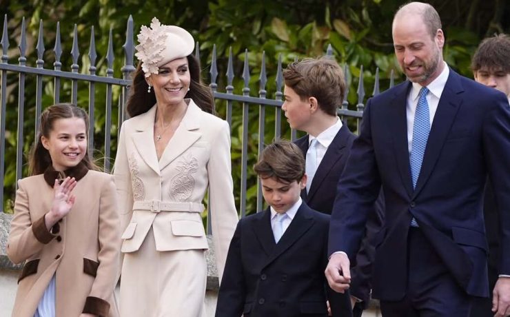 Cremefarbener Anzug und Ohrringe von Königin Elisabeth II.: Kate Middleton mit der Familie zum Oster-Gottesdienst